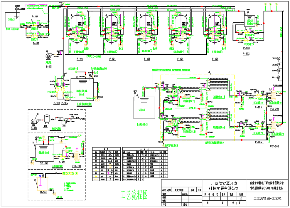 本工程反滲透水處理設備由2套系統構成。單套產水能力175t/h,總產水量為350t/h。