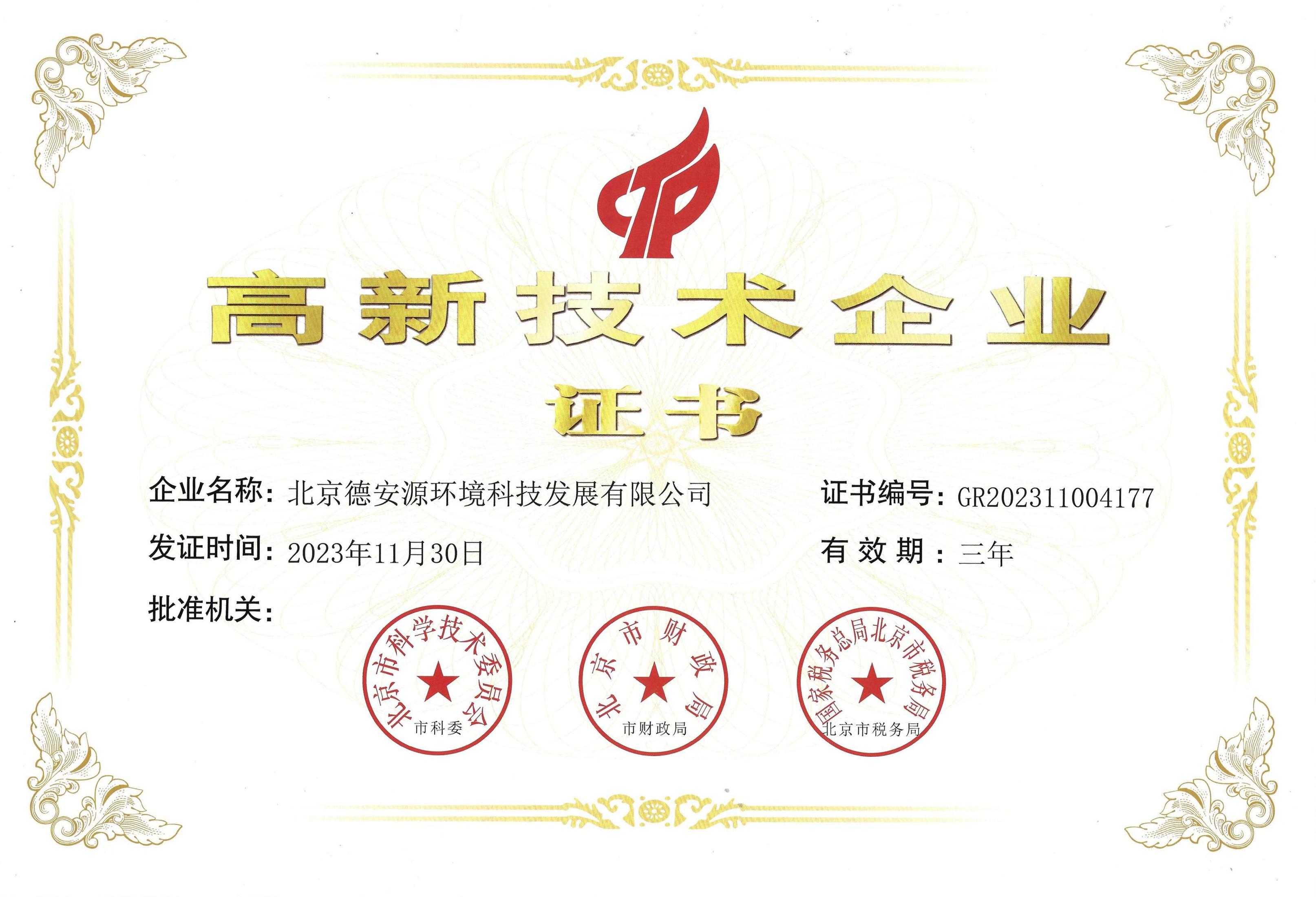 高新技術企業證書